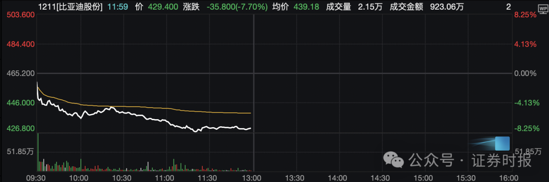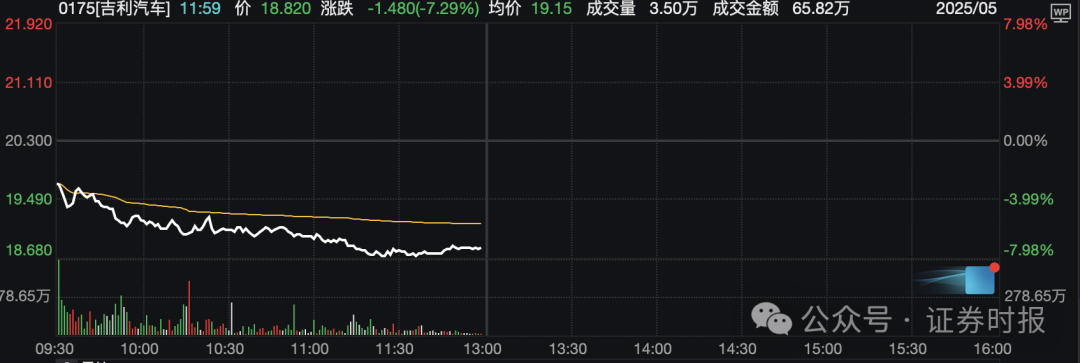 恒生指数成份股中,比亚迪股份盘中跌幅一度超过8%,吉利汽车盘中跌近8%。