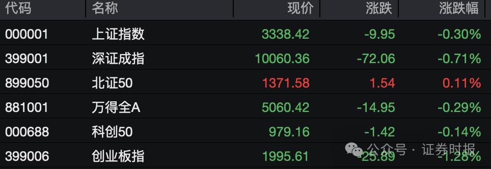 A股市场今天上午整体窄幅震荡,主要指数涨跌互现。截至上午收盘,上证指数跌0.30%,深证成指跌0.71%,创业板指数下跌1.28%,北证50指数上涨0.11%。