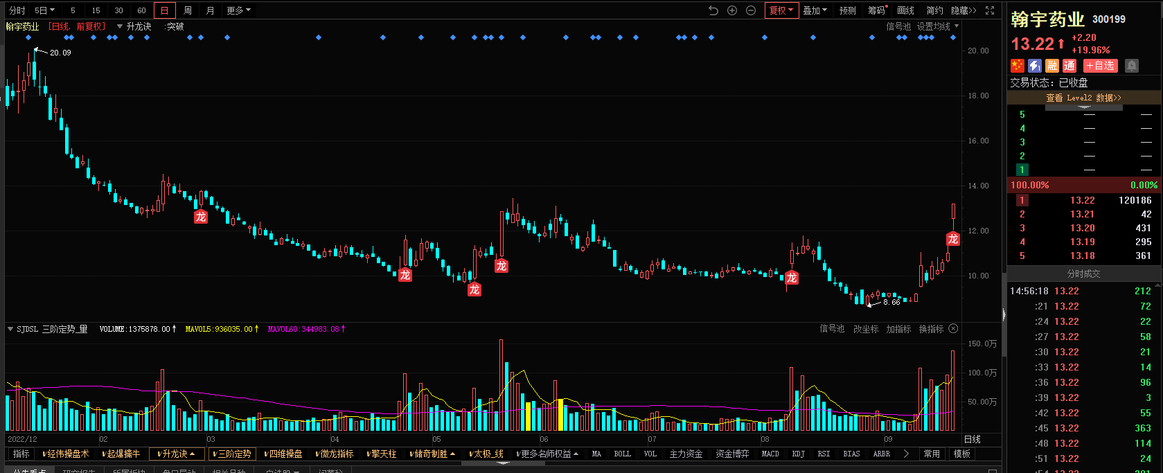 参考资料:翰宇药业-升龙诀指标-出现龙信号。