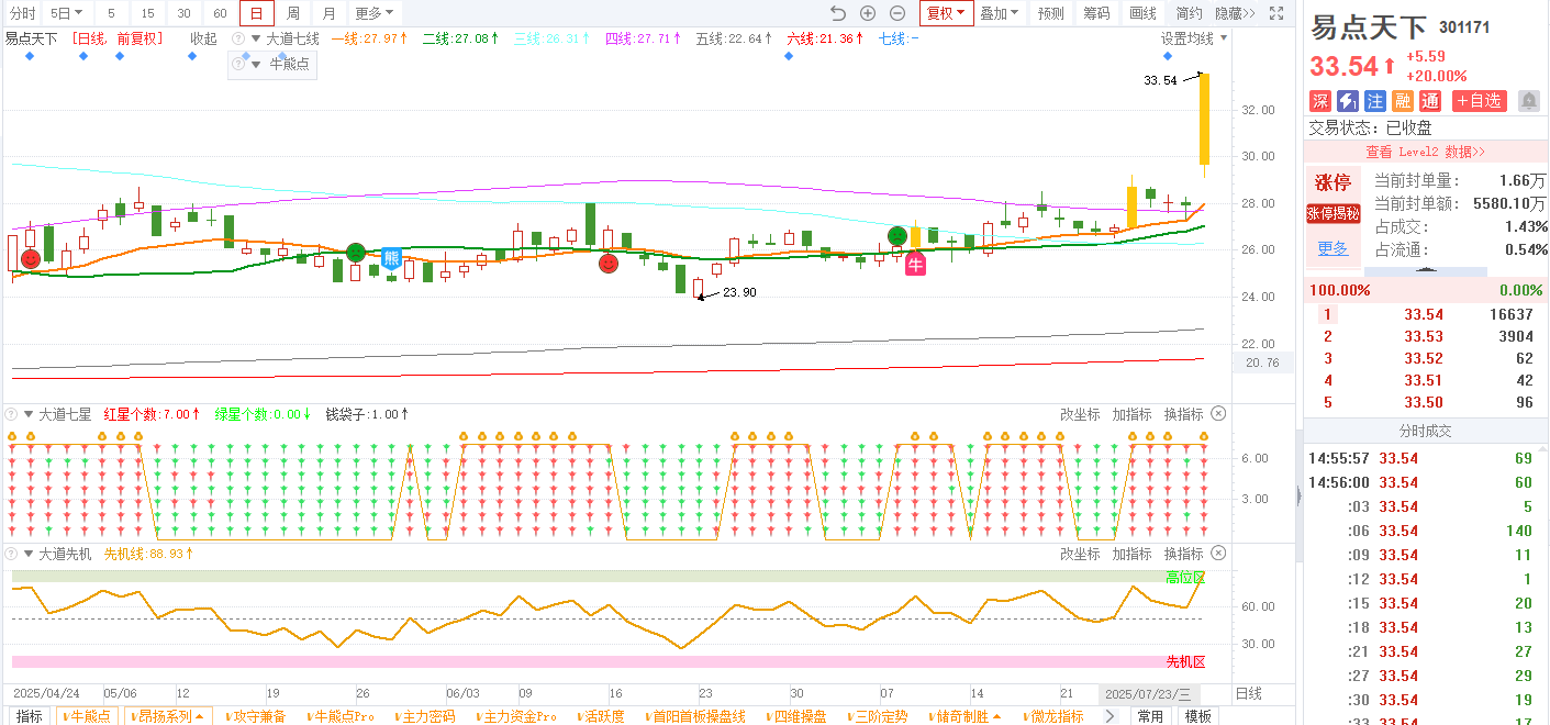 1)20250731-易点天下-301171-大道七线-日线出现笑脸信号,且大道七星全红;