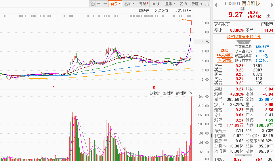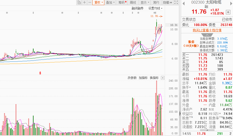 市场情绪:市场热点快速轮动,全市场超2900只个股下跌。今日全市场共59股涨停,连板股总数13只,33股封板未遂,封板率为64%(不含ST股、退市股)。焦点股方面,商业航天概念股再升科技晋级6连板,航天系央企航天机电走出12天7板,福建电缆股太阳电缆一字涨停录得10天6板。