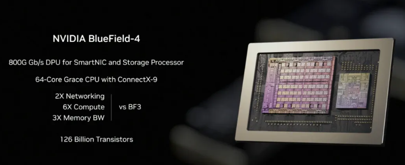 解决AI“记忆”瓶颈:利用BlueField-4 DPU构建推理上下文内存存储平台,为每颗GPU凭空增加16TB高速共享内存,彻底解决长文本“显存墙”问题。
