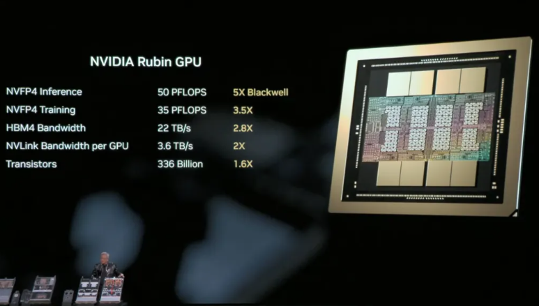 黄仁勋用一个生动的比喻来解释新一代AI芯片的设计思路:“这不是简单地造一个更好的引擎,而是重新设计整辆车,让引擎、传动、底盘协同工作。”“它的AI浮点性能是Blackwell的5倍,但晶体管数量仅为后者的1.6倍。”黄仁勋强调,这种超出摩尔定律常规预期的性能飞跃,源自于“极端协同设计”。