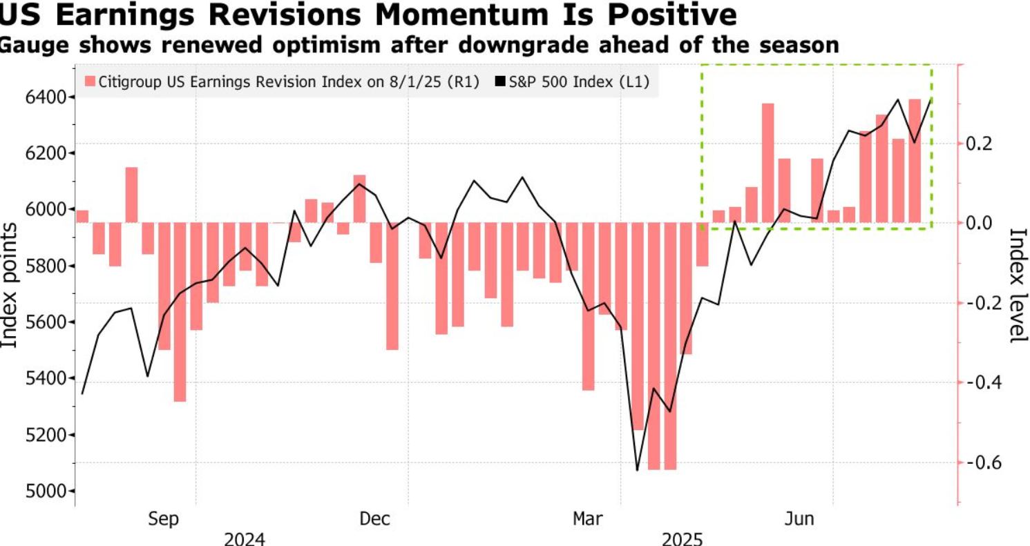 花旗集团的股票策略师团队表示,标普500指数成分公司财报季迄今整体交出了一份“令人印象深刻的超预期”业绩成绩单,同时大多标普500指数的成分公司坚持对下半年业绩的原有展望,其中一部分公司甚至上调全年业绩展望。迄今的业绩上修结果显示,基于每股盈利(EPS)的市场一致预期正在上移。