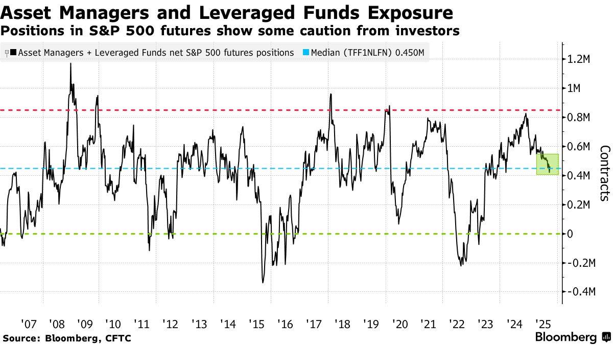摩根大通策略师们补充称,美国股指期货的投机性持仓目前相对接近其长期中位水平,此前在2024年和2025年第一季度曾显著高于中位水平。这表明,总体敞口目前仅接近历史平均水平,而非处于过度扩张区间,即便股市正处于历史高位。