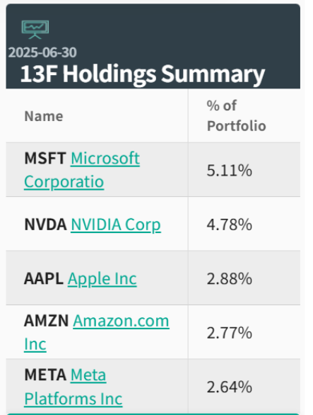 根据美国证券交易委员会(SEC)最新披露,近日,包括摩根大通、先锋集团、贝莱德等全球金融巨头纷纷披露2025年第二季度持仓报告(13F)。