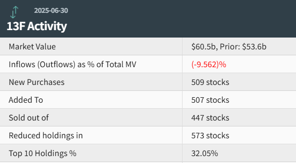 最新统计显示,野村第二季度美股持仓总市值约为605亿美元,相比之下上一季度的总市值约为536亿美元,环比增长13%。野村在第二季度的美股投资组合中新增509 只个股,增持507只个股,减持了573 只个股,并且清仓447只个股。其中前十大持仓标的占野村持仓总市值的32.05%,凸显出野村的股票持仓集中于前十大股票。