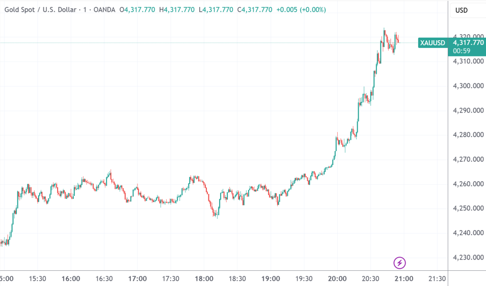 截至发稿,纳斯达克100指数期货(2512合约)涨0.63%,标普500指数期货涨0.50%,道指期货涨0.39%。现货黄金也在上周五冲高回落后重拾升势,多头在近两个小时里猛然发力,将金价拱回每盎司4320美元上方。