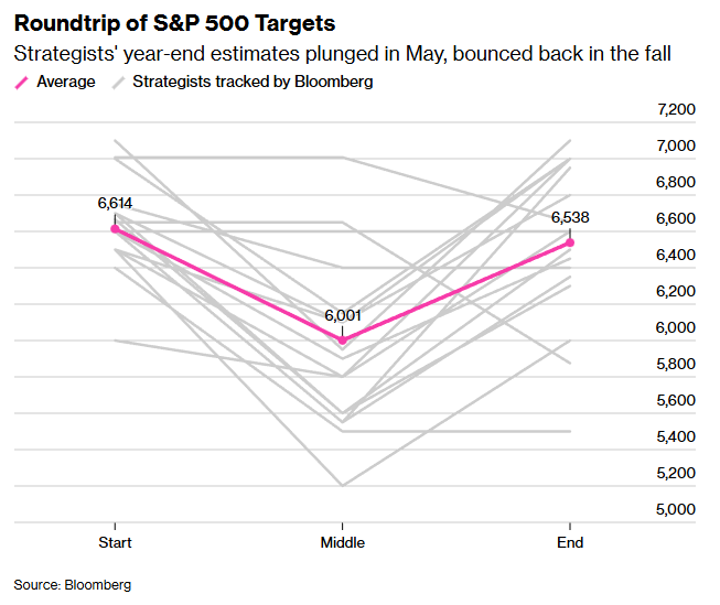 Piper Sandler首席投资策略师Michael Kantrowitz表示:“这很棘手,因为我认为过去五年、尤其是今年,不确定性非常高。”他已经放弃发布标普500年末目标点位这一做法,因为“在高度不确定的环境下,投资者会变得非常短视,对各种数据点反应迅速,而改变观点和市场共识所需要的触发因素其实并不多”。