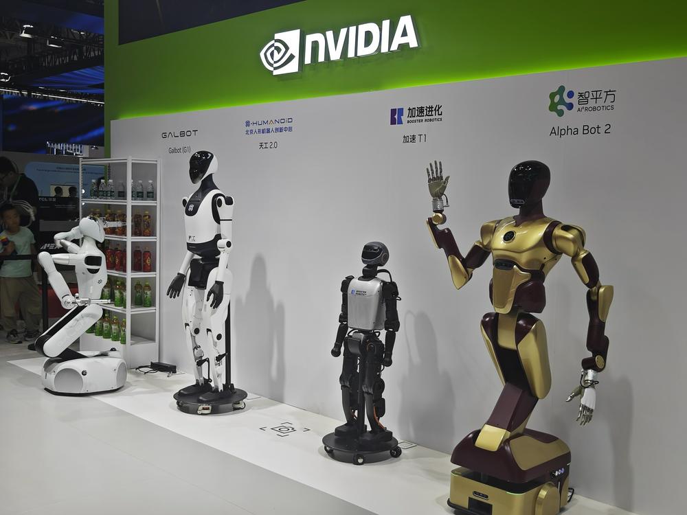 值得一提的是,四款机器人集体亮相,成为英伟达首次参展的最大看点,分别是银河通用Galbot(G1)、北京人形机器人创新中心天工2.0、加速进化T1、智平方等机器人。