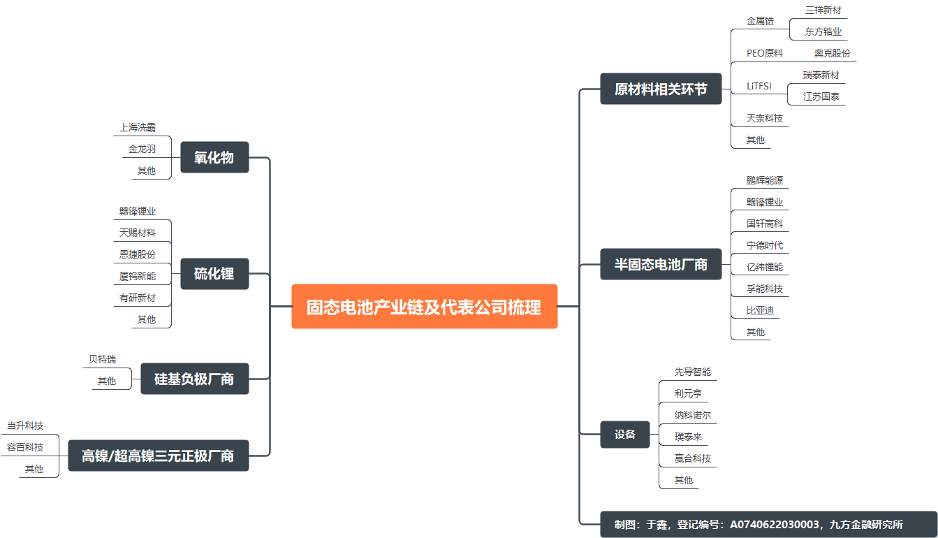 预计今年是整车和电池厂在固态领域技术快速迭代的一年,固态电池上车进展正在加速,相关环节包括: