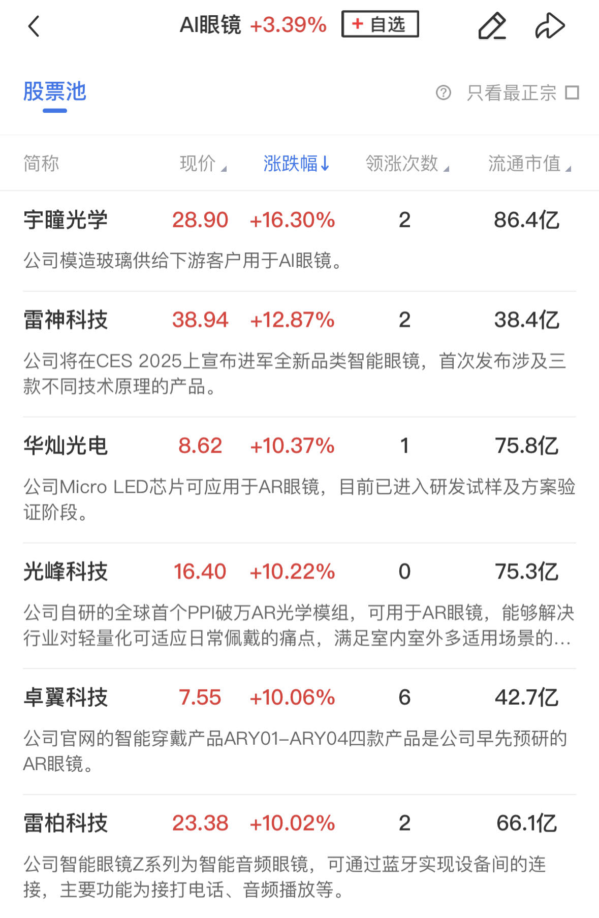 AI眼镜再度活跃,卓翼科技、雷柏科技、瀛通通讯涨停,雷神科技、弘信电子、永新光学等个股涨幅居前。消息称,小米AI眼镜原定于2025年3月至4月发布,现计划提前至2月,与小米15 Ultra同台亮相。