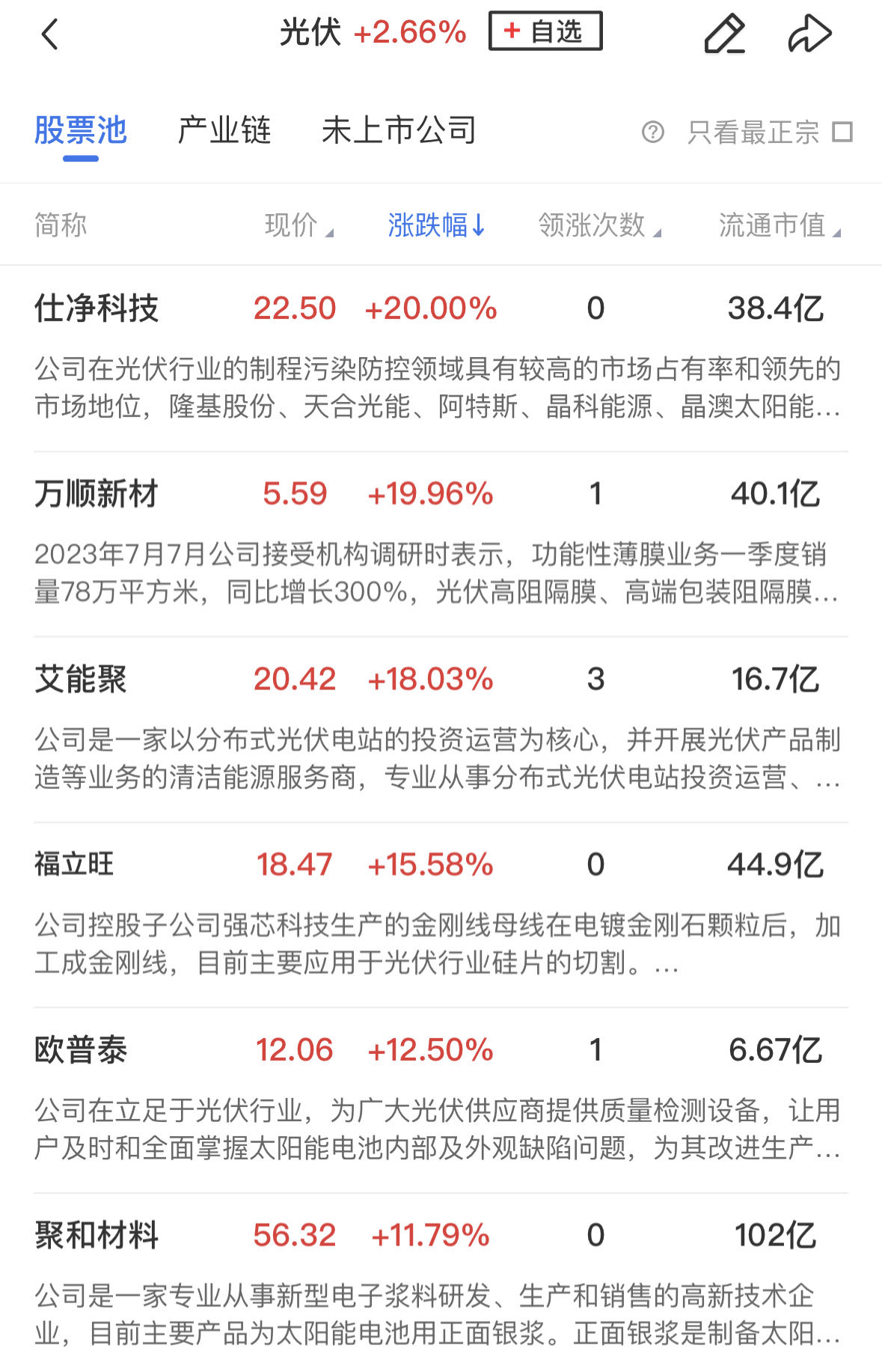 光伏板块同样展开反弹,钧达股份、双良节能、爱旭股份涨停,聚和材料、金博股份、德业股份、海泰新能、通威股份、海优新材、金刚光伏等个股涨幅居前。