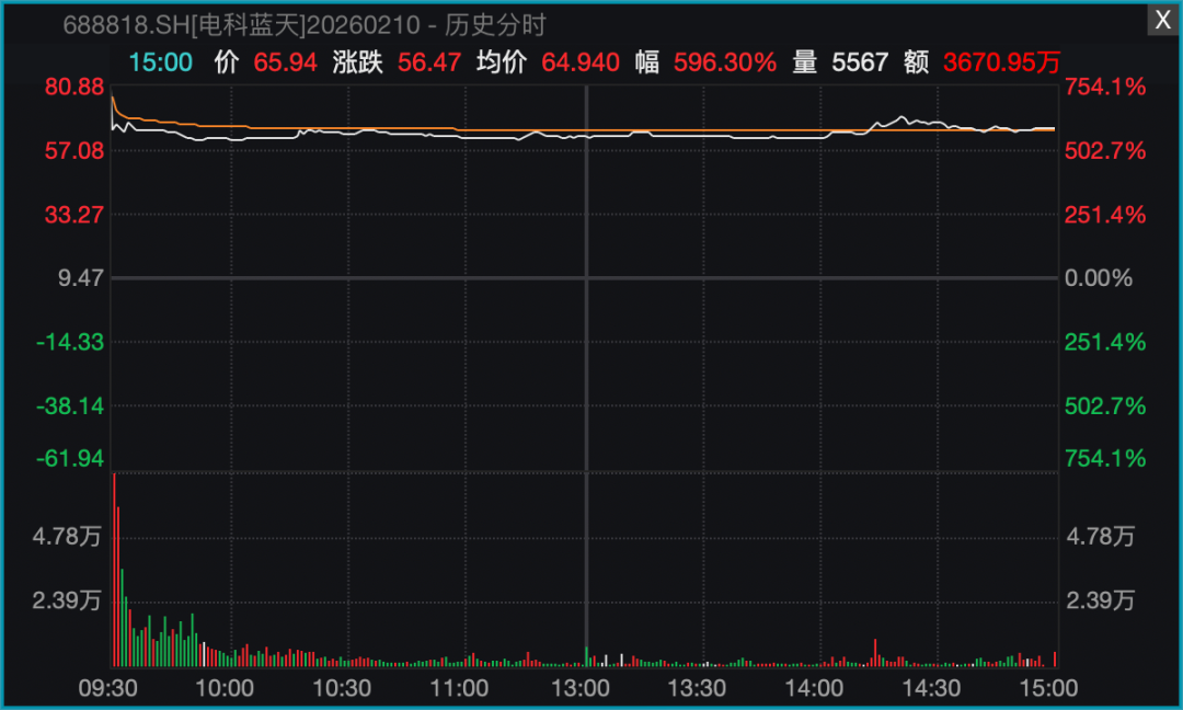 其中,科创板公司电科蓝天上市首日大涨596.3%,成为新股“涨幅王”。公司主营业务涵盖宇航电源、特种电源、新能源应用及服务三大板块,最新市值1056亿元。