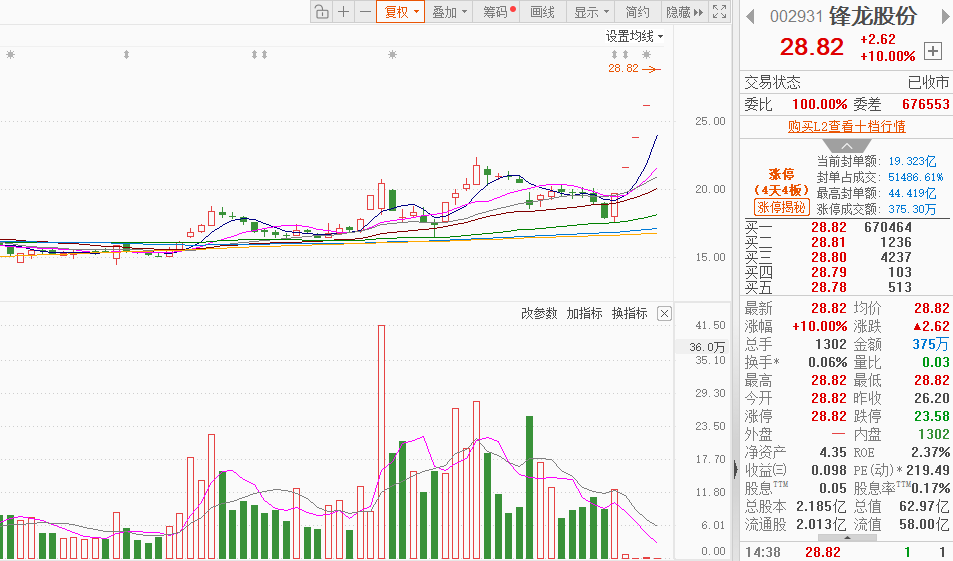 市场情绪:近2个月以来首次出现成交持续突破2万亿的情况,既是市场情绪高涨的直接体现,更反映出市场资金的参与意愿不断增强,市场热点快速轮动,抱团科技产业链,但全市场超3400只个股下跌。今日全市场共54股涨停,连板股总数18只,26股封板未遂,封板率为67%(不含ST股、退市股)。焦点股方面,实控人变更的嘉美包装10连板、锋龙股份5连板,机器人概念股大业股份5连板、天奇股份4连板、泰尔股份4连板。