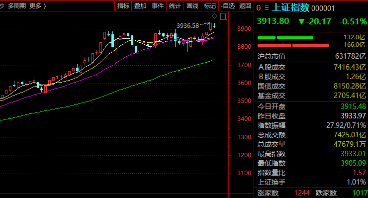 今日早盘,A股低开震荡整理,上证指数回试3900点支撑,科技成长股调整较多,科创50跌逾4%,失守1500点,创业板指也大跌逾3%,跌破3200点,市场成交保持平稳。