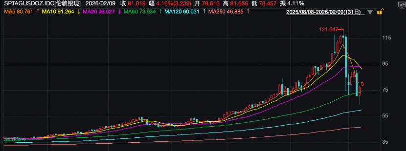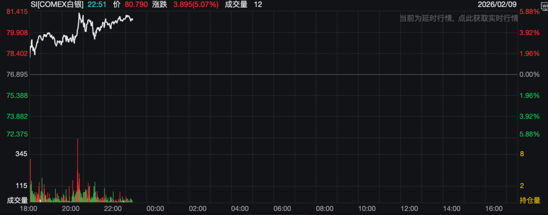 国际白银市场方面,近两个交易日,白银现货持续反弹。截至发稿,伦敦银现涨超4%,站上81美元/盎司关口;COMEX白银涨超5%。