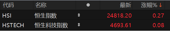 恒生指数高开0.27% 恒生科技指数涨0.08%
