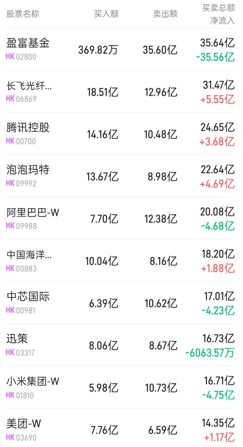 此外,长飞光纤光缆(06869)获净买入2.27亿港元。而阿里巴巴-W(09988)、中芯国际(00981)、中海油(00883)分别遭净卖出6.56亿、6.26亿、7233万港元。