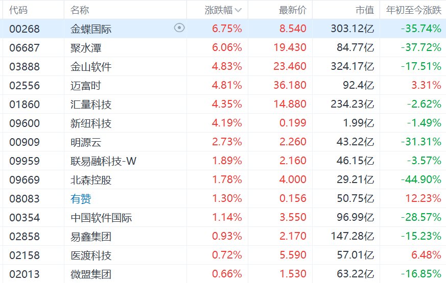 港股SAAS概念股集体上涨,迈富时涨超4%