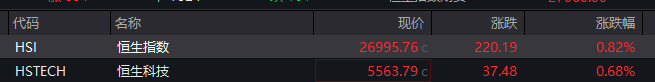 恒生指数高开0.82% 恒生科技指数涨0.68%