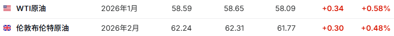 3. 截至发稿,WTI原油涨0.58%,报58.59美元/桶。布伦特原油涨0.48%,报62.24美元/桶。