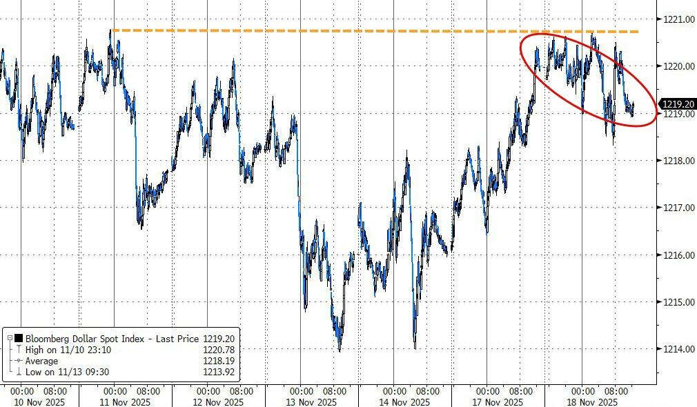 彭博美元指数跌0.06%,报1219.19点,日内交投区间为1220.71-1218.31点。