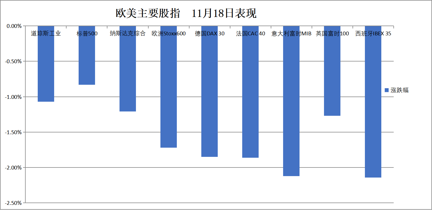 欧洲股市收跌超1.7%,德法英估值至多跌超1.8%,意大利银行板块跌超2.5%。