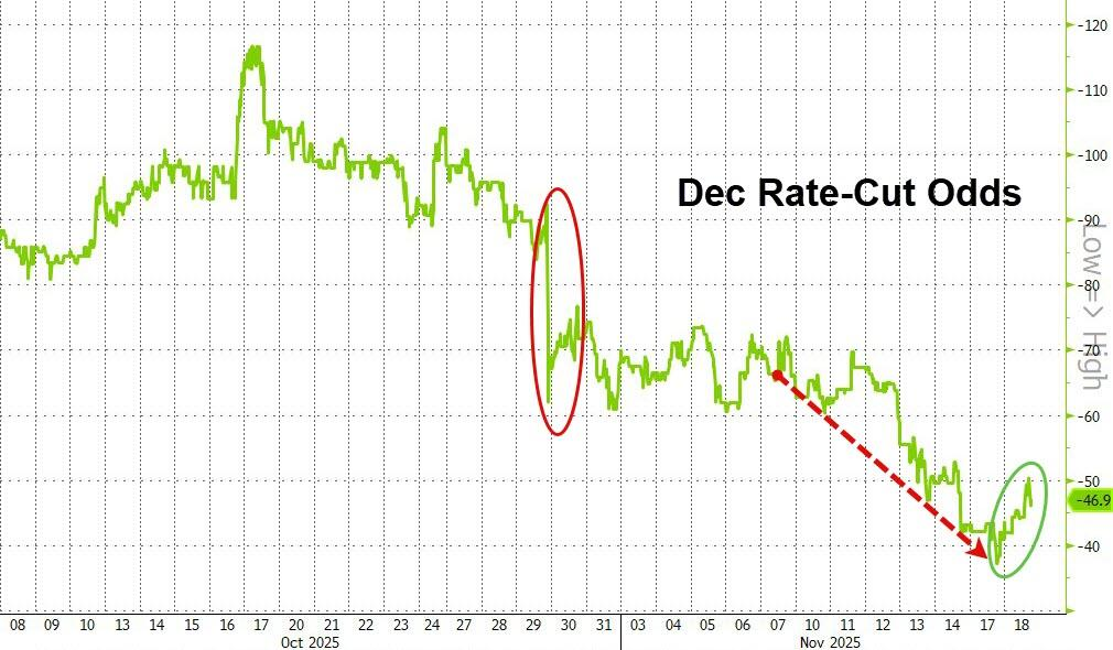 - 美股盘前,据华尔街见闻,美国ADP周度就业数据显示美国私营部门就业人数持续减少,而官方的首申人数报告则因政府停摆继续缺席。美联储降息预期上升叠加经济担忧,美债收益率下挫,10年期收益率跌一度跌超5基点。
