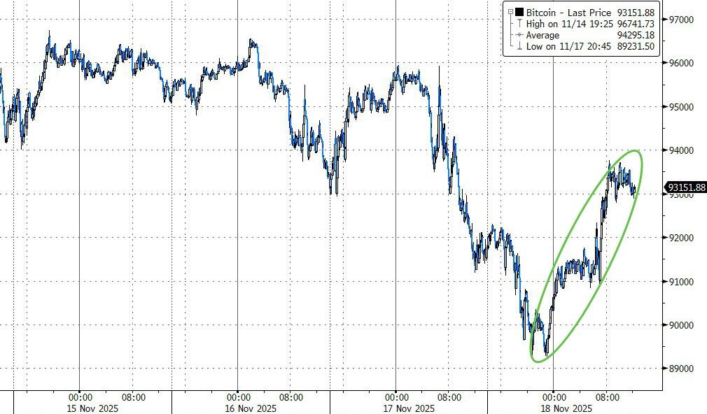 美债盘中冲高回落、涨势一度消减。美元指数止步两连阳,日元又创逾九个月新低。连日重挫的加密货币反弹,比特币盘中跌穿9万美元大关后一度回涨近5%、重新站上9.3万关口,以太坊盘中跌破3000美元后一度反弹超7%。