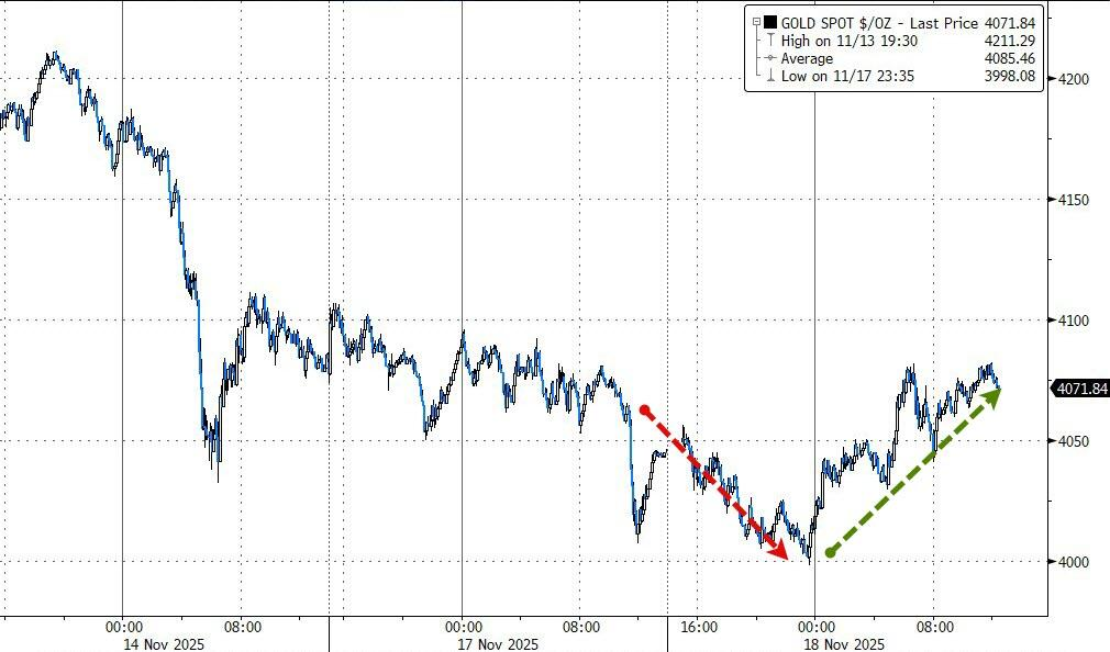 纽约尾盘,现货黄金涨0.54%,报4066.40美元/盎司,全天呈现出V形反转。