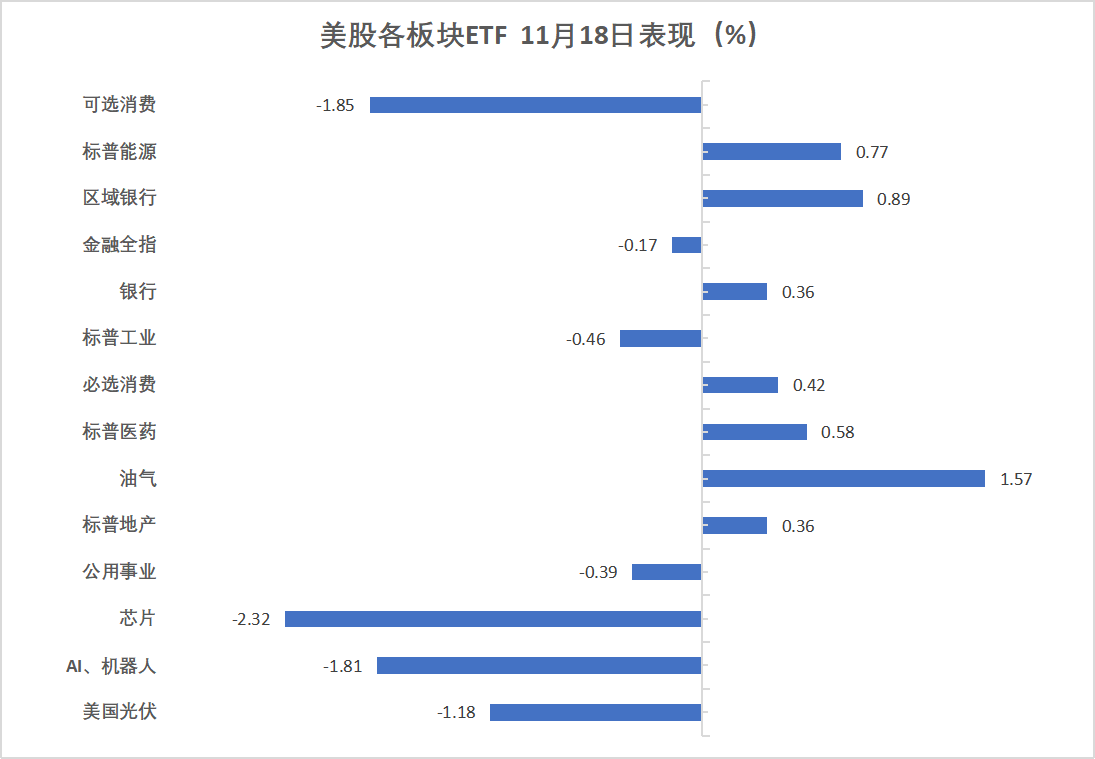 半导体ETF收跌超2%,领跌美股行业ETF,银行ETF涨超0.8%,标普可选消费板块跌2.5%