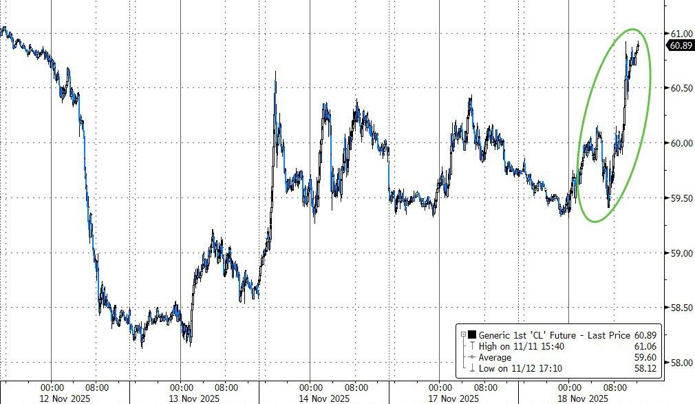 WTI 12月原油期货收涨0.83美元,涨幅1.39%,报60.74美元/桶。