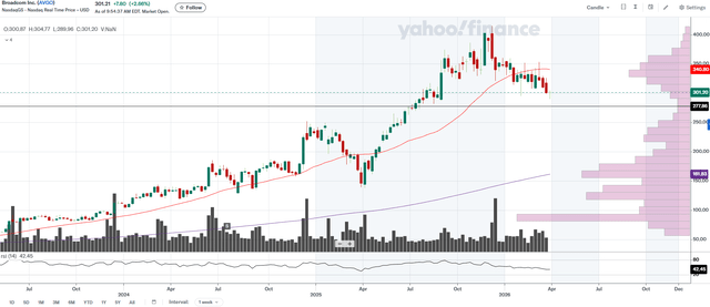 结论是,尽管基础设施软件业务占比仅为35%,但该业务板块的利润率使其成为维持公司盈利能力的关键杠杆之一。因此,如果客户流失率进一步加速,甚至超过之前描述的水平,那么博通将失去主要的增长动力。市场是否已经将这种局面反映在了股价中?或者恰恰相反,这仅仅是增长趋势的暂时调整?