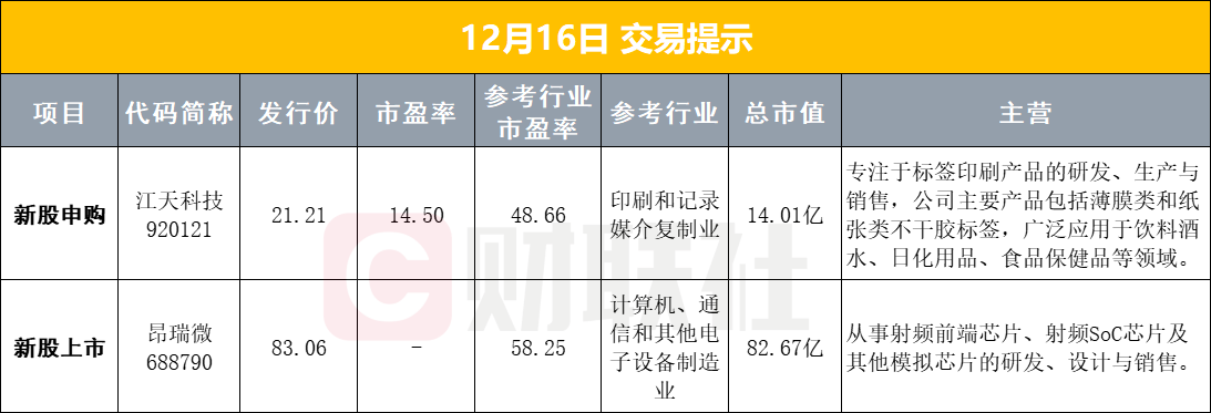 2、沐曦股份公告,公司股票将于2025年12月17日在上海证券交易所科创板上市。