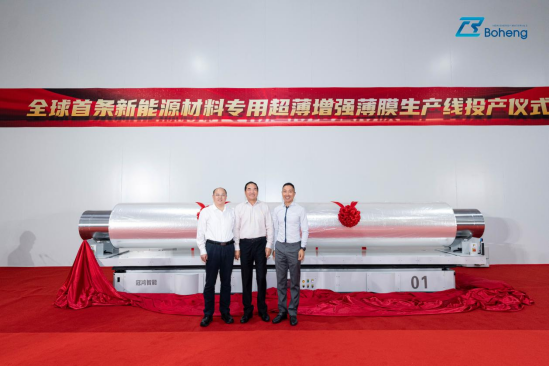 6月10日,新型复合集流体高端材料生产线投产暨产品下线仪式在扬州市江都区博恒新能源新材料产业园举行。该项目的投产也成为了全球首条新能源专用超薄增强可金属化薄膜双向拉伸生产线。