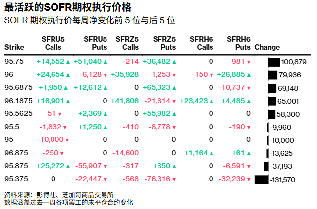 1×2看跌价差的大手买入。95.6875执行价上的看跌价差同样被大量建仓。与此同时,95.375执行价的头寸则通过12月与3月看跌期权显著平仓。