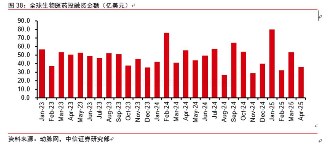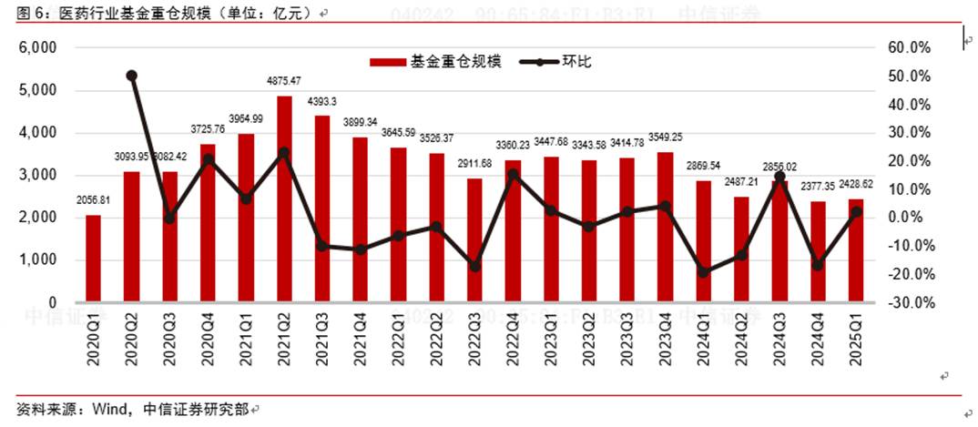 但是我们判断,后续医药行业的资金面有望好转,从而支撑后续的行情演绎,例如:2025年Q1医药板块公募基金重仓规模已触底回升,我们判断国内投融资规模目前处于筑底阶段;科创板第五套标准稳妥恢复;多家生物科技公司港股密集上市等。