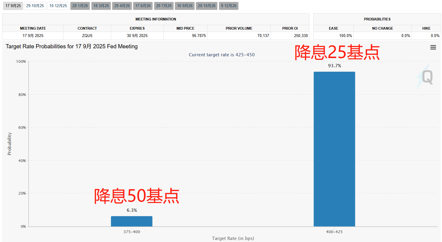 (CME“美联储观察”数据显示,交易员们已经在考虑下个月大幅降息的可能性)