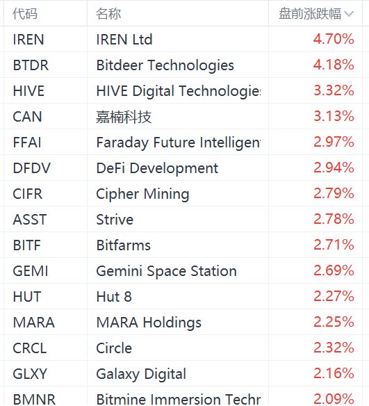 美股加密货币概念股盘前走高,嘉楠科技涨超3%