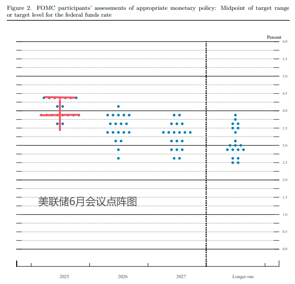 其中,2025年的降息路径无疑是市场行情关联最为紧密、影响也最大的一处看点。在6月公布的点阵图中,美联储维持了对今年2次降息的预测,但正如我们上文提到的,当时美联储内部的分歧颇大——支持年内降息2次的人数与支持不降息的人数几乎旗鼓相当。