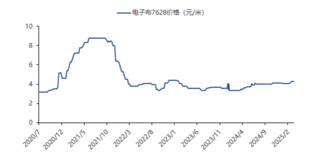 宏和科技主要从事中高端电子级玻璃纤维布的研发、生产和销售的高新技术企业,是全球著名的中高端电子级玻璃纤维布专业厂商。24年底公司低介电产品已获得客户认证通过,公司将进一步研发并提高产品性能和品质,获得更多的客户的认可。当前公司在LowDK/CTE(低介电/低热膨胀系数)等高端领域布局,下游客户包括生益科技、联茂电子、台光集团、台燿科技、南亚新材等知名公司。公司通过最新募投项目(1254吨高性能玻纤布),有望乘此次AI、高频通信等需求“东风”,迎来新发展阶段。我们预计随着产能释放、自供率提升及行业复苏,盈利水平将进一步提升。当前公司在Low-DK/CTE(低介电/低热膨胀系数)等高端领域布局,下游客户包括生益科技、联茂电子、台光集团、台燿科技、南亚新材等知名公司。 以2025年6月的均价为基础,7628电子布均价4.3元/米,较年初4元/米上涨约8%,较2024年同期3.7元/米上涨16%。目前的价格相比于行业高点8元/米仍然存在较大上行空间。2025年6月初,日东纺宣布将于8月1日对相关玻纤产品涨价20%,玻纤行业涨价趋势依然持续,相关厂商利润有望持续修复,电子布行业公司中报业绩有望的到反转。 图:电子布价格 |