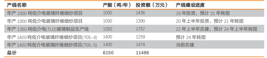中材科技是中国建材集团旗下新材料平台公司,其控股股东是中国建材集团,公司主营业务包括玻璃纤维、风电叶片及锂电池隔膜,分别通过泰山玻纤、中材叶片及中材锂膜子公司运营,持股比分别为100%/57.97%/48.39%。从特种玻纤业务看,泰山玻纤已经沉淀技术多年,当前看到的主要是低介电电子布一代产品,未来还会有二代产品、低膨胀纤维等,作为未来3-5年的技术储备。由于AI服务器及交换机市场的兴起,公司储备的低介电电子布一代产品,2023年下半年起量,2024年下半年加速放量,当前处于供不应求局面。针对这一国产替代机会,公司将顺应经济转型大背景,积极增加供应能力,优化良率和性能,让泰山玻纤成为AI领域不可或缺的供应商。特种玻纤业务占比的提升,有利于泰山玻纤价格中枢和盈利的提升。我们跟踪公司共有5条低介电玻纤产线,合计产能约6150吨,公司最早于19年便开始布局,24年建成二条低介电玻纤生产线,截至目前拥有四条低介电玻纤生产线,另有一条1400吨T05-5在建产线。25年4月12日,公司公告特种玻纤布投资项目产能由2600万米提升至3500万米,项目建设总投资14.3亿元,建设期12个月,预计26-27年公司低介电电子布产能将进一步抬升。
