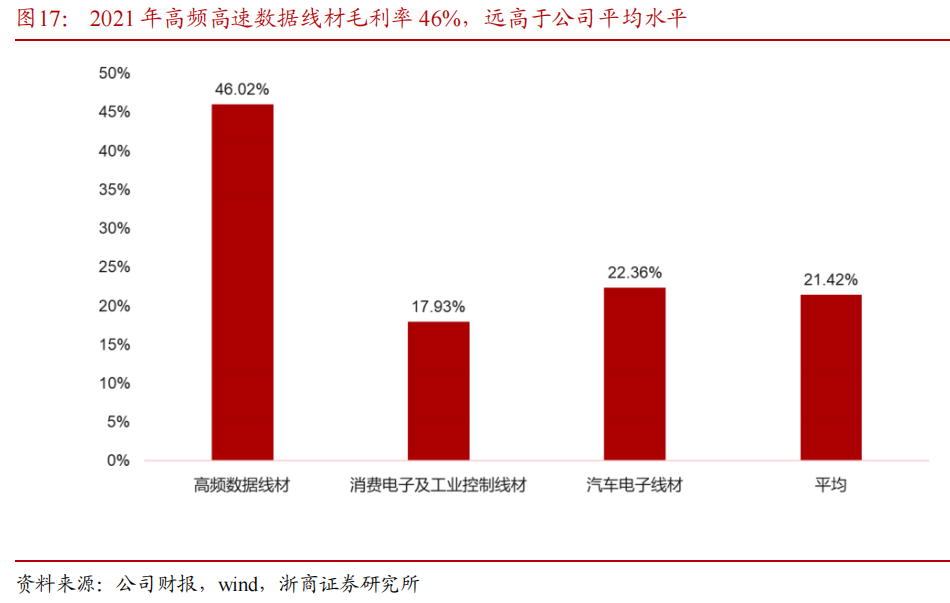 安费诺为公司前五大客户,主要供应安费诺电子装配(厦门)公司。2024年公司高频数据线材销售额达1.17亿元,同比增长103%。根据21年数据,高频数据线材毛利率可达46%。