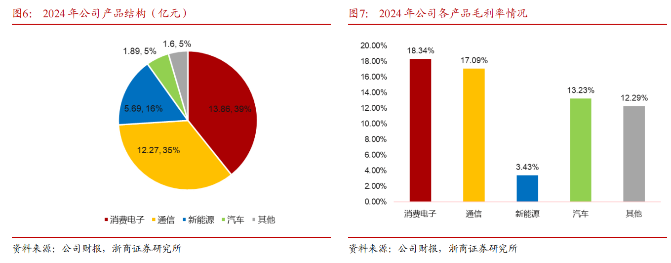 核心产品覆盖通信、消费电子、新能源、汽车四大领域。
