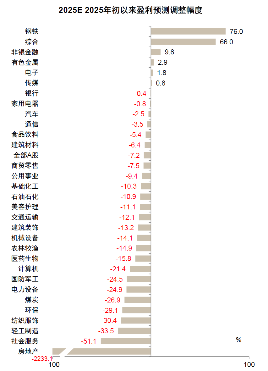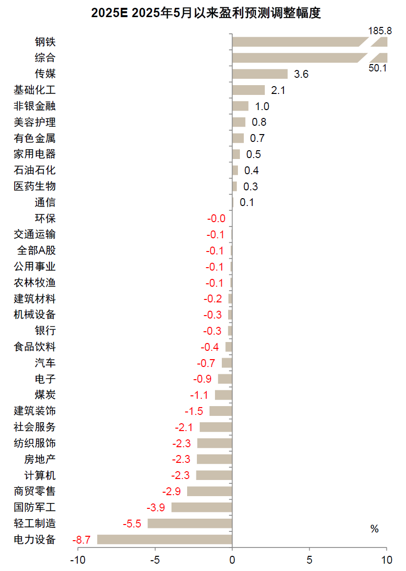 图表:2025年二季度以来对2025年行业盈利预期的变化