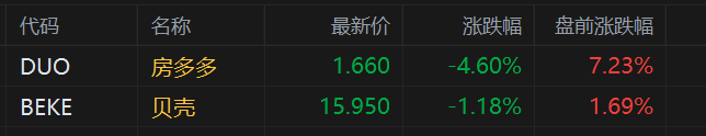 美股异动丨房多多、贝壳盘前分别上涨7.2%、1.7% 北京调整住房限购政策