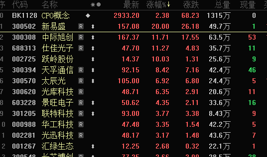 盘面上,仅CPO概念、液冷服务器、英伟达概念、光通信等与AI算力相关的少数题材逆市飘红。