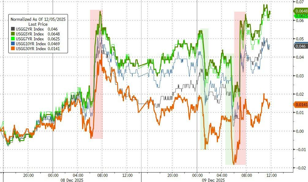 美债收益率全天波动剧烈,十年期收益率围绕4.18%一线反复拉锯,短端表现相对更弱。全球层面上,越来越多央行被视为已接近或结束宽松周期,这也在边际上推高了全球期限溢价,使美债难以获得“单边顺风”。