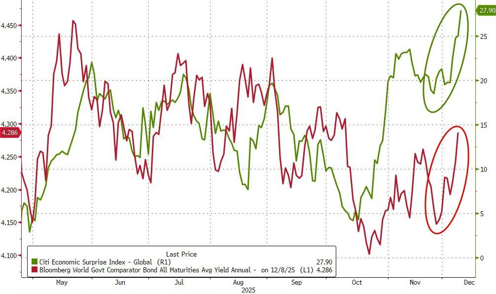 (全球债券收益率跟随花旗全球经济意外指数走高,反映出近期全球经济数据超预期)